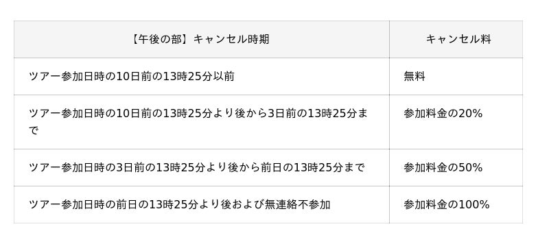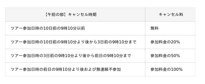 (ツアー中止の場合は、参加者の代表者へ事前に予約システムからご連絡差し上げます。)