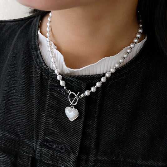 商品名:ハートチャーム付き パール×ビーズブレスレット