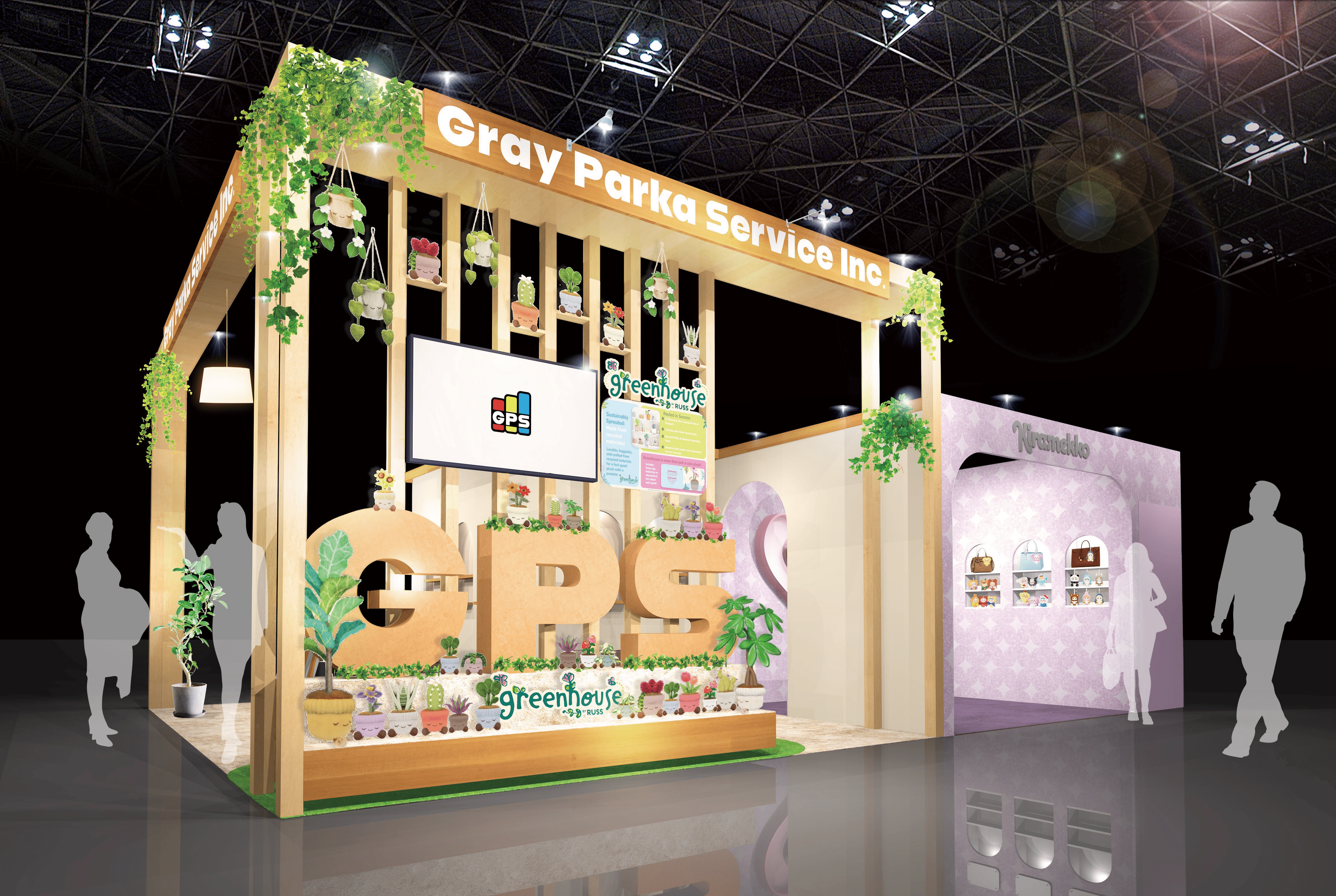 当社ブースではリビング空間を再現し、様々な種類・サイズの「Greenhouse」のぬいぐるみを展示する予定です。