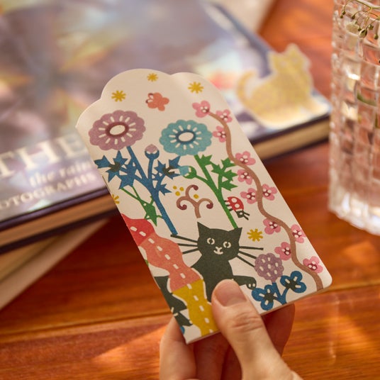 イラストレーターの松尾ミユキがデザインした猫型の付箋です。淡い色合いの印刷で、文字の視認性にも配慮されています。ノートや手帳に貼って、勉強や仕事の時間を少し楽しくしてくれそうです。贈り物や伝言メモ、本のしおりにも適しています。