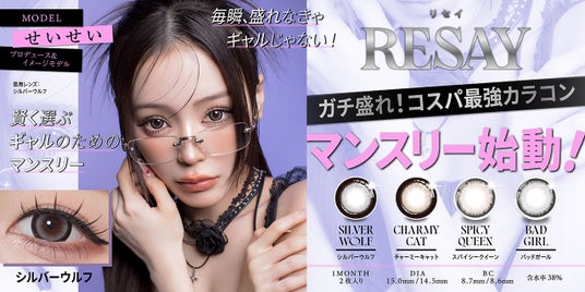 また、『RESAY 1MONTH』は1箱2枚入りの「1,650円(税込)」で、1日あたり「約55円(※30日使用した場合)」のハイコスパマンスリーです。毎日オシャレを我慢せずに楽しみたいギャルの皆様の為に、気になったらゲットしやすく、リピートしやすい価格で毎日のKAWAIIを応援します。