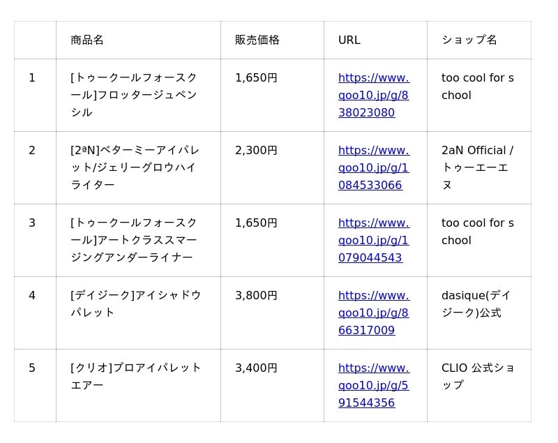 『アイシャドウ』 ランキング
