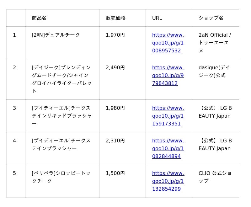 Qoo10(https://www.qoo10.jp/)サイト上、「美容液」「リップメイク」「アイシャドウ」「チーク」カテゴリーの公式ショップ各販売個数に基づいたランキングです。