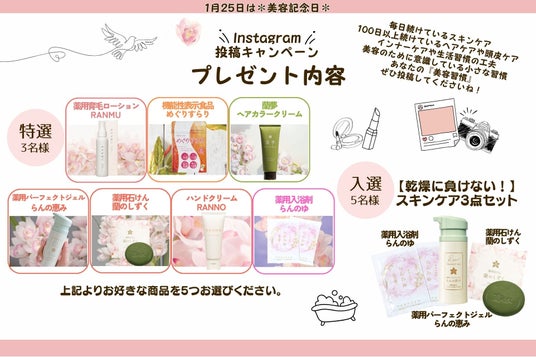 株式会社河野メリクロン(本社:徳島県美馬市、代表取締役社長:河野圭佑)は、2026年1月25日の「美容記念日」に合わせ、Instagramにて【#100日美容習慣】投稿キャンペーンを開催いたします。