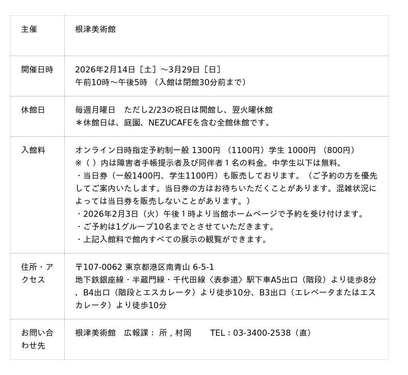 いずれの催事も、当館ホームページ<「イベント情報」>の各申込フォームから参加をお申込みください。受付開始は2026年2月3日(火)午後1時です。