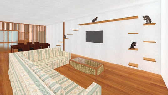 共有スペースのリビングには、新しい家族を待っている「保護猫」たち8匹が、住猫として暮らす予定です。