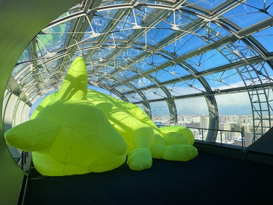 札幌市内を一望できる大和ハウス プレミストドームの展望台に、WA!moto. Motoka Watanabeによる巨大な猫のインフレータブル彫刻「OU-CNI.」が出現します。