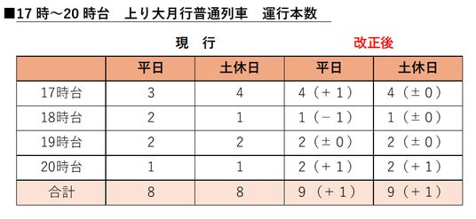夕方帯の上り列車の増発と待ち時間改善で通勤利用の利便性も向上