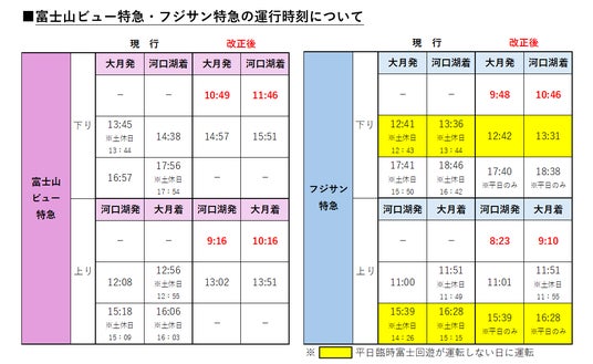 (1)「富士山ビュー特急」「フジサン特急」の運行時間帯を変更