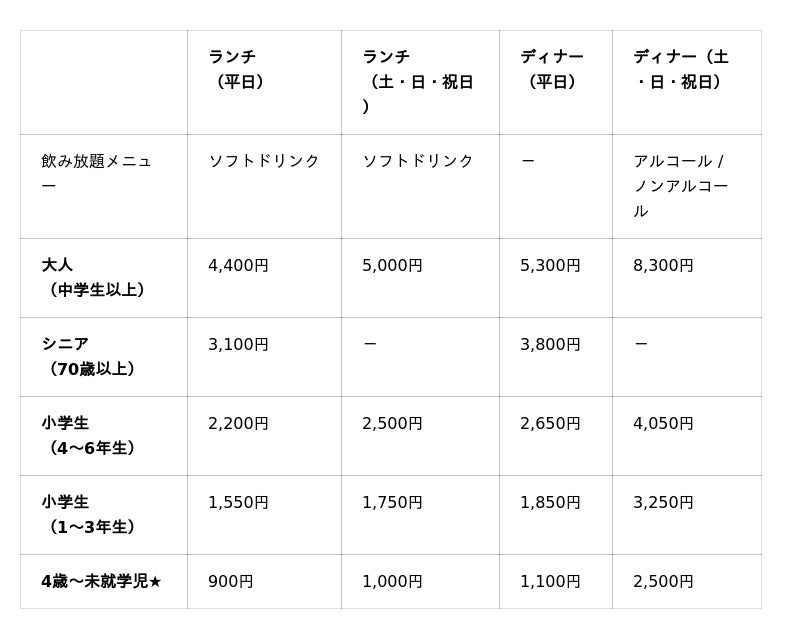 【料金】※料金は、税金・サービス料を含みます。 ※シニア料金は各種割引・特典との併用不可。
