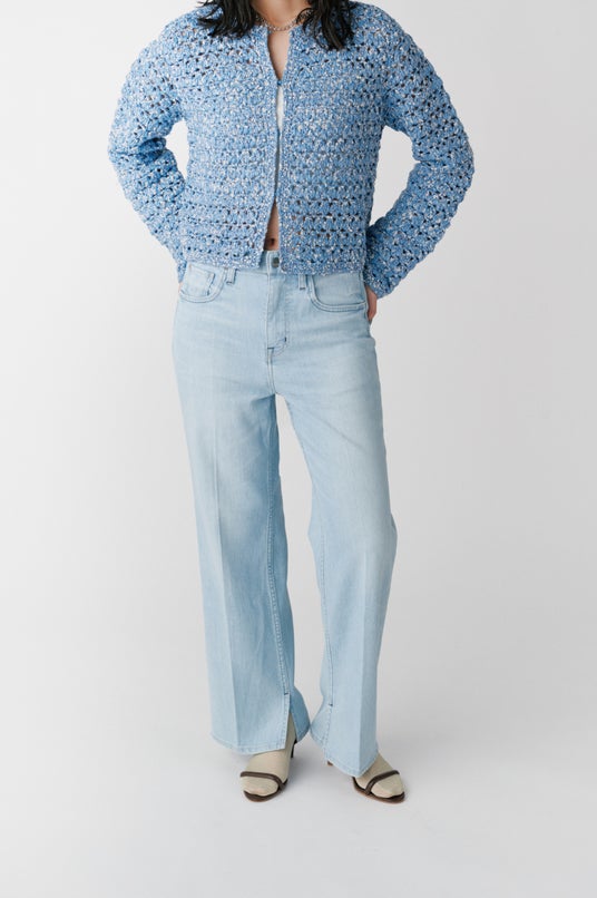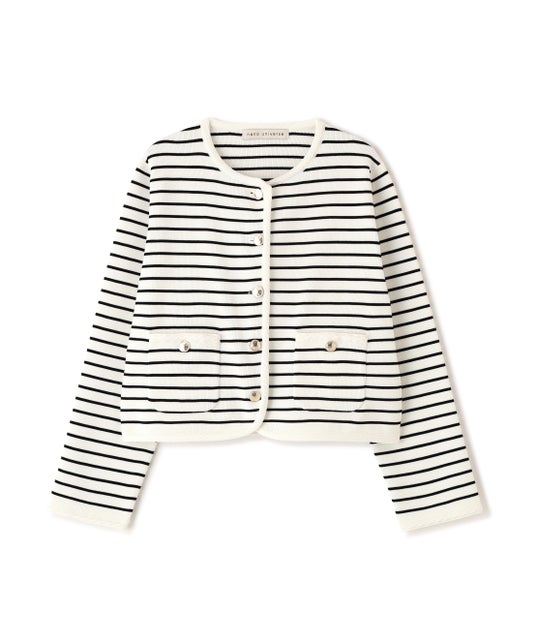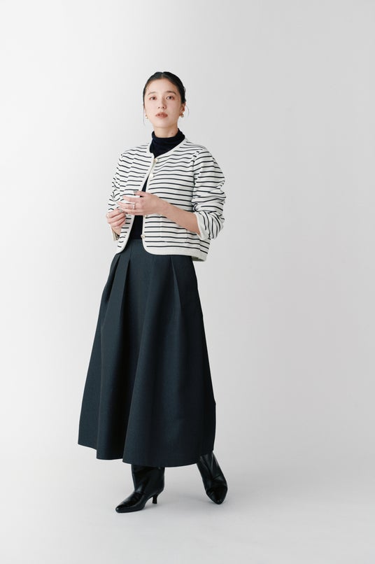 ¥14,300 ta xinクラシカルで洗練された、金ボタンがポイントのきれいめニットジャケット。ニットカーディガンよりもきちんと見える、絶妙なバランス◎。全体の端やポケット口には、共糸で柄編みしたトリミングを施し、さりげない立体感とクラフト感をプラス。軽やかな着心地ながら、羽織るだけでスタイリングが整う着まわし万能アイテムです。