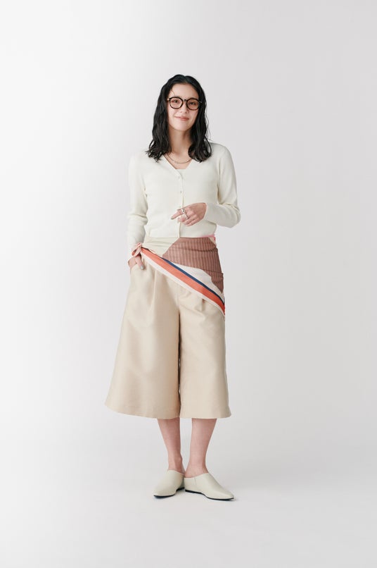 ¥14,630 tax inキュロット丈とややロー気味なウエストラインのバランスが、今季らしいシルエットを演出するキュロットパンツ。タックを取りボリュームのある分量にしつつ、エアリーな素材感で軽やかなスタイリングにまとまる一着。