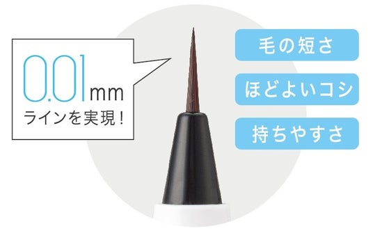 「シューティングリキッドアイブロウ」は、わずか0.01mmのラインで自眉のように描ける超極細アイブロウ。一番の特長は描きやすさ。厳選した2種の毛を混毛し、職人による手組みで仕上げた筆で、ブレずに繊細なラインを描き足せます。また肌の表面を染め※1落ちにくさを発揮する独自の染料処方を採用し、ラスティング力と鮮明な発色を叶えます。