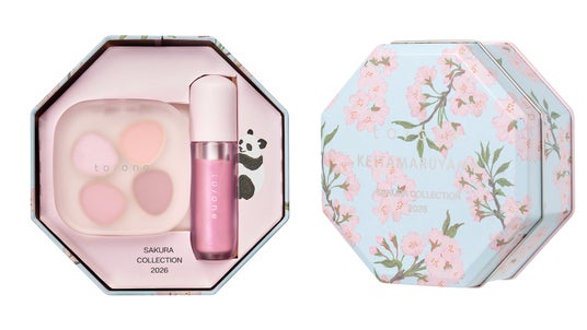 限定の「ペタル フロート アイパレット」と「ペタル ブルーミング グロス」をセットしたスペシャルボックスが登場。KEITA MARUYAMA の「おもたせアイテム」として人気のチョコレート缶からインスパイアされたピンクとブルー、2つの桜モチーフの限定缶セット。