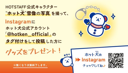 ご来場の皆様に「ホット犬 オリジナルカイロ」をプレゼント!さらに、ホット犬公式Instagramのフォロワー限定で、ガラポン抽選会を開催!大人気の「ホット犬ぬいぐるみ」はじめ、オリジナルグッズを多数ご用意してお待ちしております。
