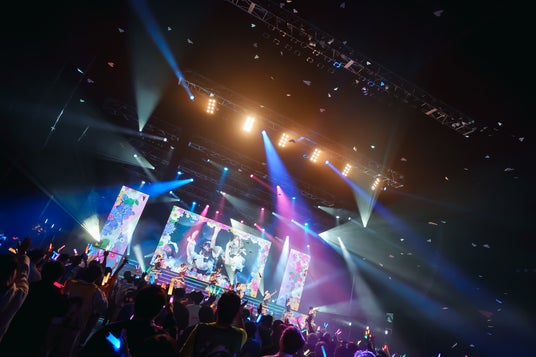 タイトルが浮かび上がり、SEが鳴る。白い照明が走り、歓声が一斉に広がる。