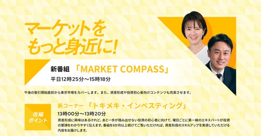 午後の取引開始直前から東京市場をカバーします。また、資産形成や投資初心者向けコンテンツも充実させます。