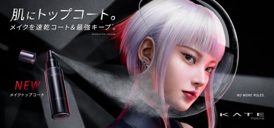 今回発売する「ケイト メイクトップコート」は、ミストがミクロレベルで隅々までムラなく伸び広がり、膜へと変化する「ミクロトップコート技術」を採用。汗・皮脂・こすれ・乾燥くずれからメイクを徹底的にガードし、つけたてのきれいな仕上がりを持続します。