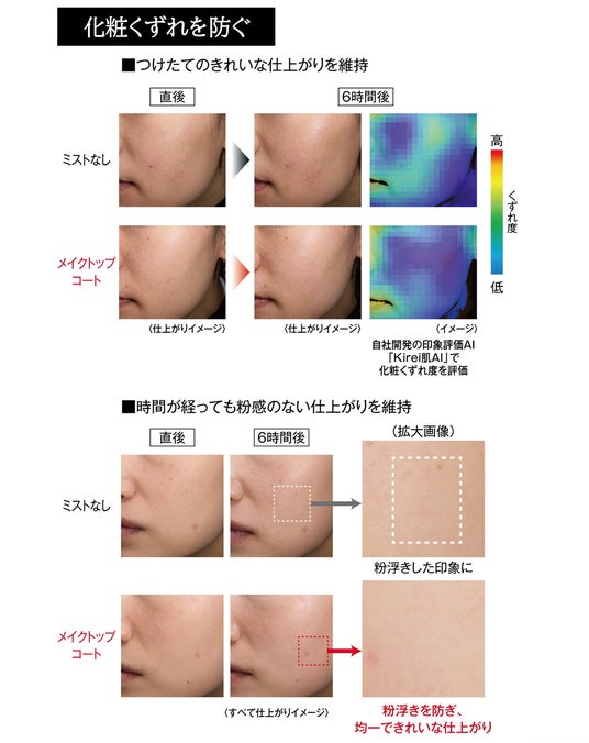 【自社開発印象評価AI「Kirei肌AI」で化粧くずれ度を評価】