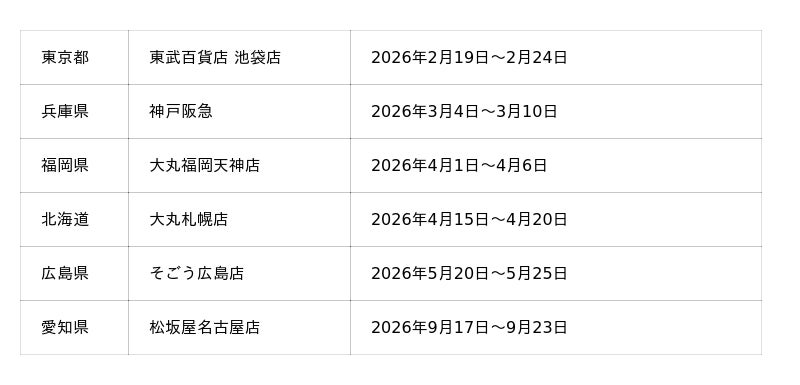 ポップアップストア出店スケジュール