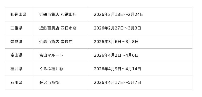 今回“ヴォヤージュの旅”第2弾で訪れるのは北陸・近畿地方! 2月18日 和歌山からいよいよスタートします。旅するお菓子が各地をめぐるこの機会、お近くの方はぜひ足をお運びください。