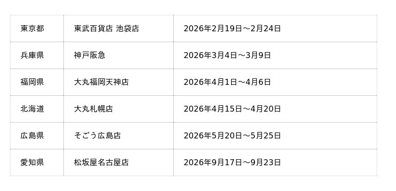 ポップアップストア出店スケジュール