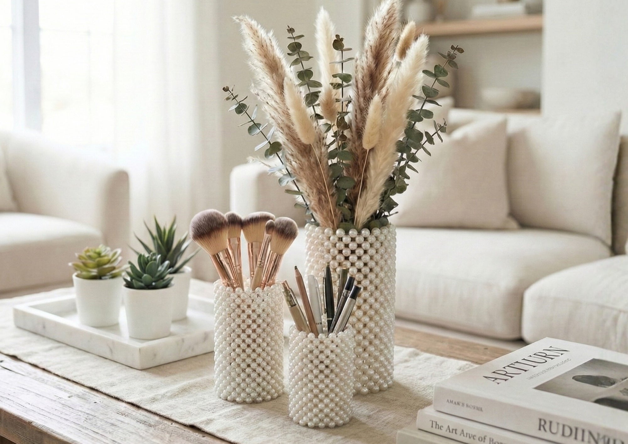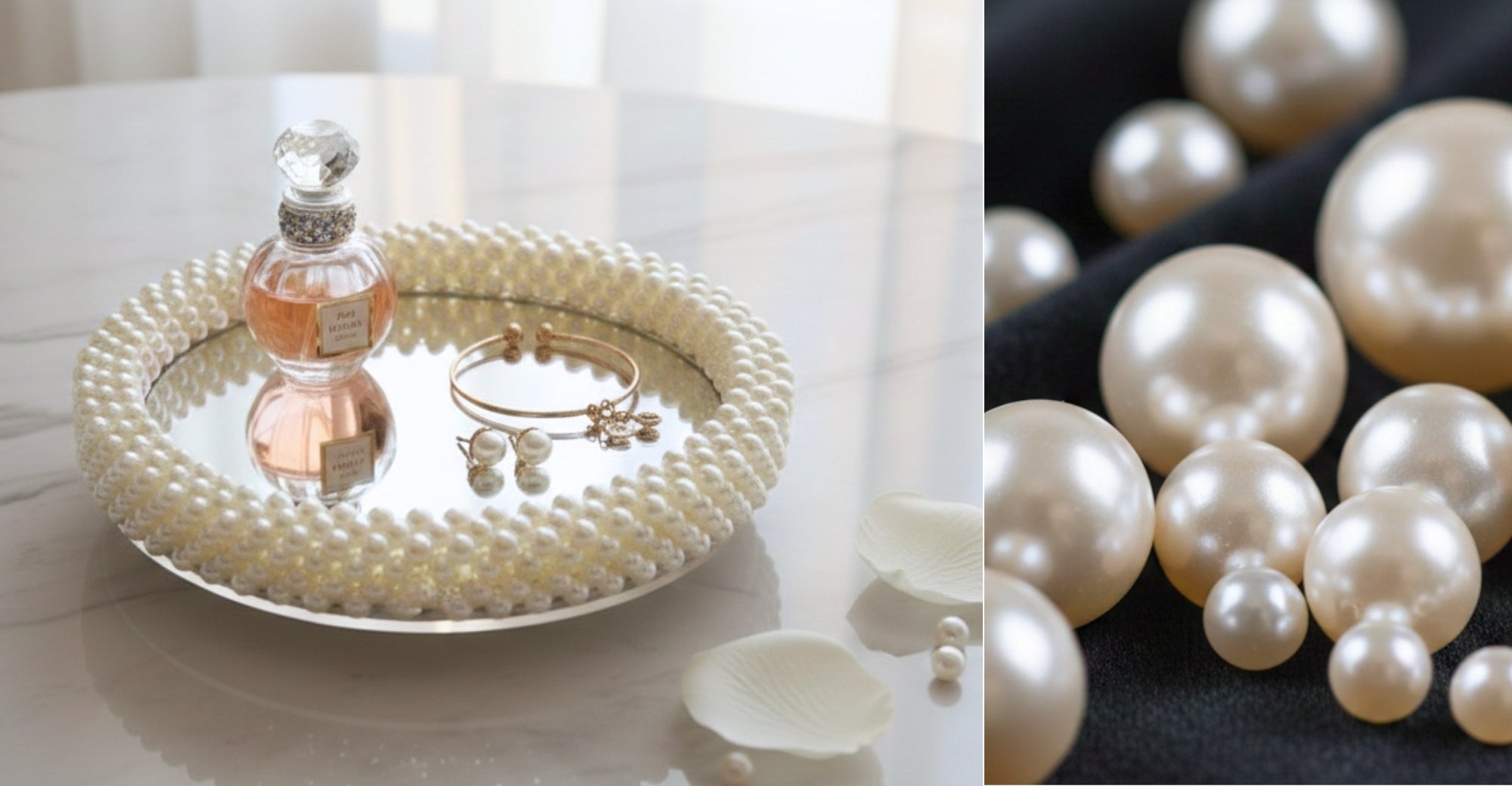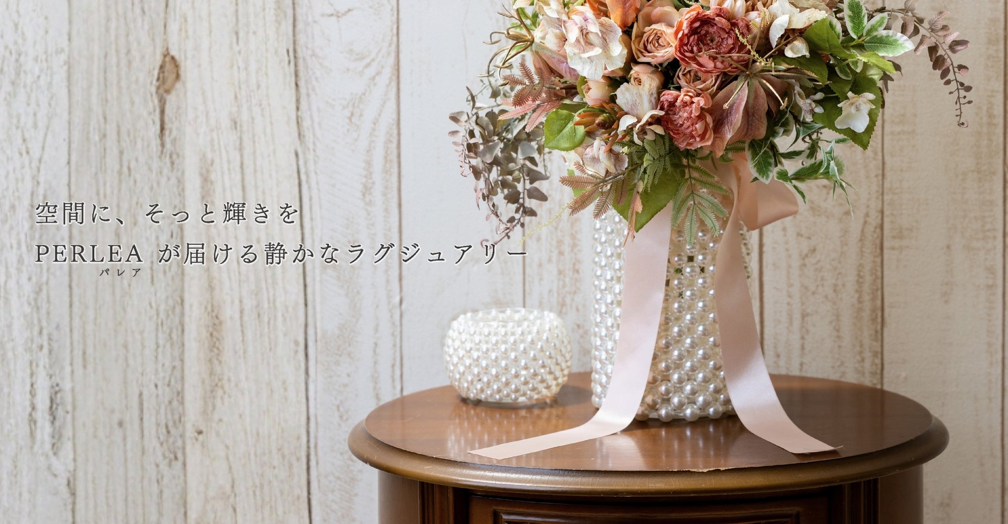 イミテーションパールの柔らかな輝きを活かし、空間そのものに上質な空気感をもたらします。
