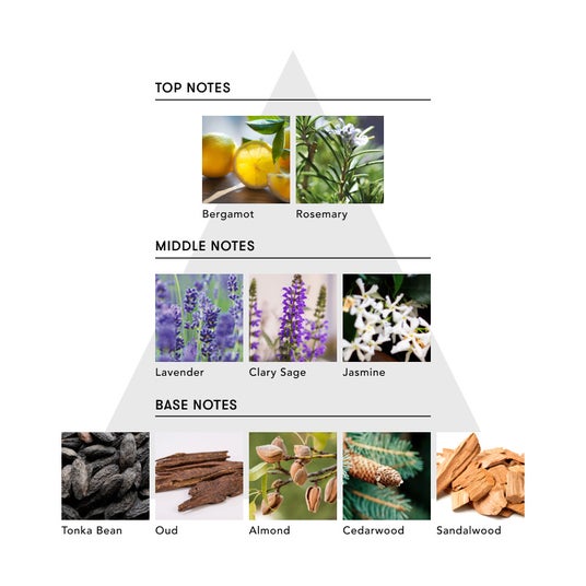 甘く深いトンカビーンと、静けさを湛えたラベンダーが寄り添う香り。ベルガモットとローズマリーが凛とした清々しさを放ち、クラリセージとジャスミンが穏やかにその余韻を包み込む。ラストには、トンカビーンの温もりが静かに残り、内側から満ちるような自信と安らぎをもたらす。香りをまとうたび、心の奥に眠る“ 揺るがない自分” が目を覚ます。凛とした軸がありながらも柔らかさを表現した香り。