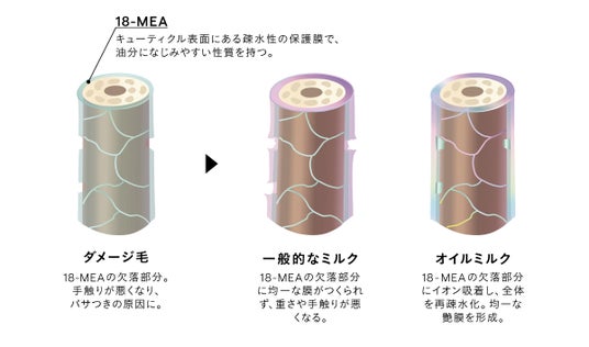 プロの現場から日常のケアまで、あらゆるニーズに応えるべく、オイルの濃密な潤いとミルクの軽やかさを融合した「次世代オイルミルク」が誕生。芯から補修しながら、重ねてもふわりとまとまる髪へ。