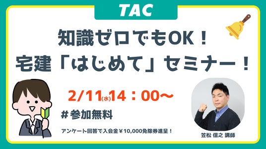 宅建士試験対策講座を展開しているTAC株式会社(東京都千代田区、代表取締役:多田敏男)は、2/11(祝水)に宅建試験に説明する無料オンラインセミナーを開催します。