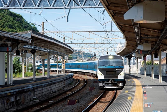 E257系は、中央線特急「あずさ」「かいじ」として活躍していた車両を改造し、特急「踊り子」としてリニューアルしました。車体カラーは、伊豆の「空の色」と「海の色」をイメージした「ペニンシュラブルー」を基調としています。客室内は、これまで車両の半分だったグリーン車を1両全体へ拡大し、普通車を含む全車の座席窓側にはコンセントを設置しています。車窓を楽しむには海側A席がおすすめです。