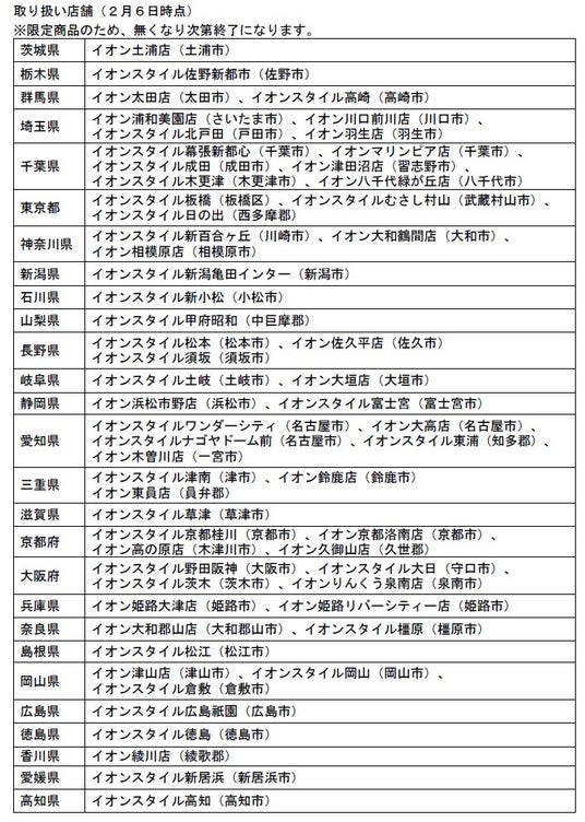 ※該当店舗は【ご参考】の取り扱い店舗を参照