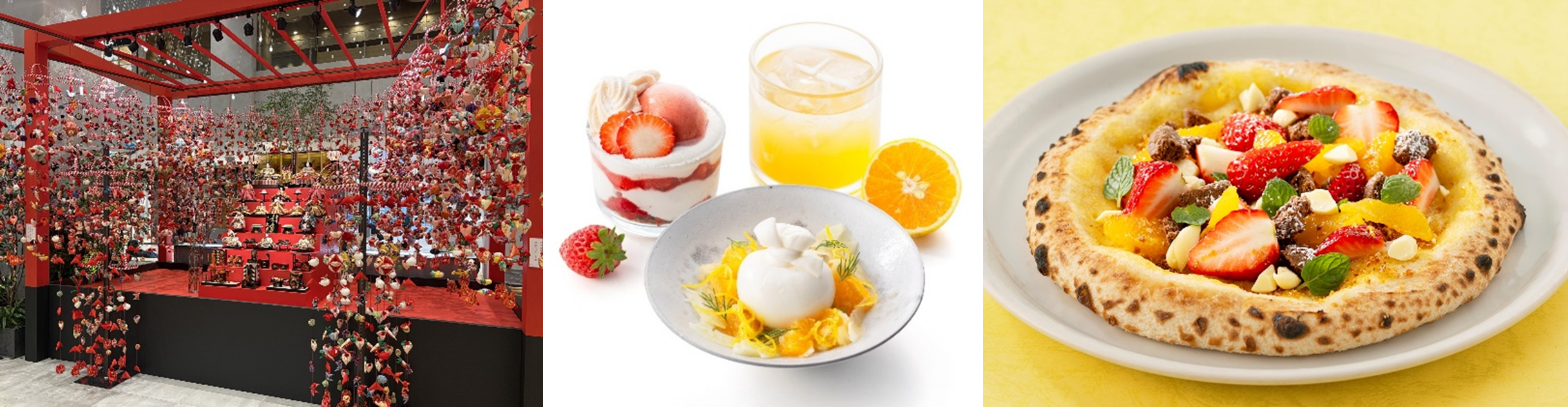 さらに、2月14日(土)~3月3日(火)の期間は、静岡県東伊豆町産のはるひ「いずのはる」と紅ほっぺ「紅の輝き」を使った期間限定メニューがお楽しみいただける、「いずのはる&紅ほっぺ」メニューフェアをレストラン店舗にて開催いたします。2025年4月にオープンした西館1Fフードコート P.のMini Massifでは、『「はるひ」とブラータチーズ』『「はるひ」のシュラブ 』『「紅ほっぺ」のパフェ』の3品や、南館9Fの壁の穴では『ピッツァフルッタ ~「紅ほっぺ」と「はるひ」~』が登場し、メインメニューからデザートまで、旬のフレッシュなフルーツを使った期間限定の特別メニューが15店舗で展開されます。