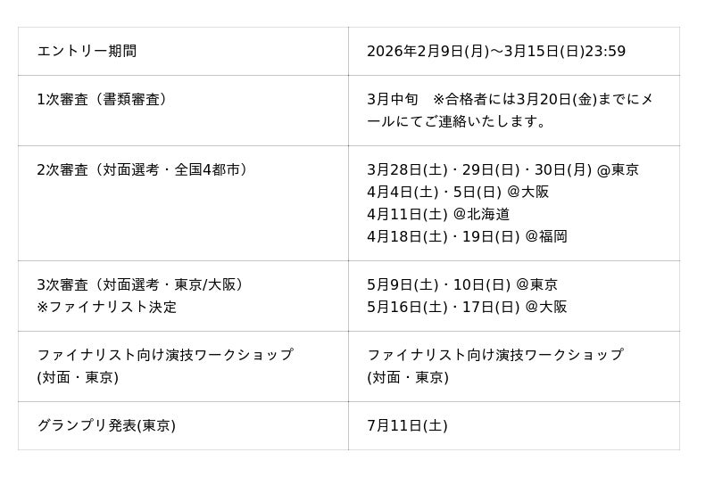 ・オーディションのスケジュールは変更する可能性があります。