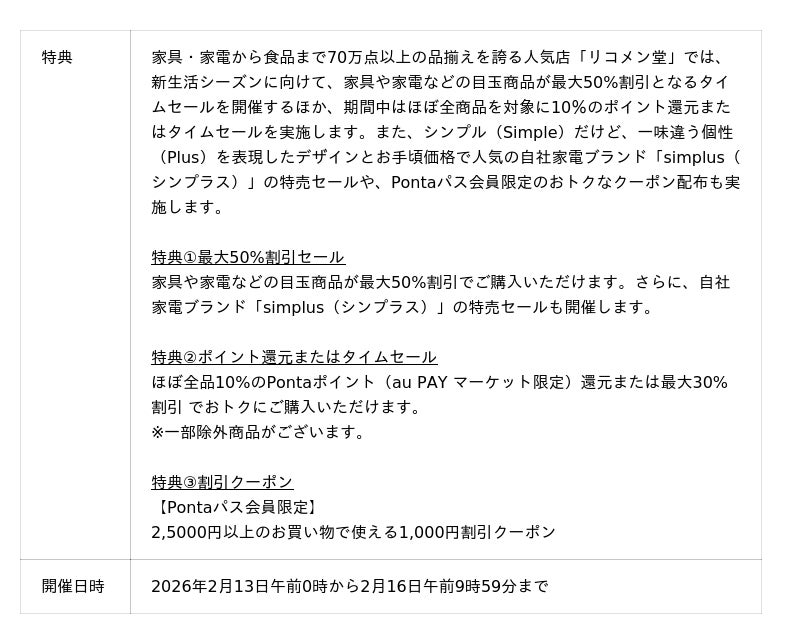 ~さらに家具や家電、グルメ、スイーツが最大60%割引、新生活の家計を応援~