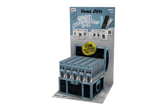 本キャンペーンでは、ブルーダイヤモンドメタリックの限定ケースのPentel Ain(0.5/HB)、ダイヤモンドメタリックの限定ケースのPentel Ain(0.5/HB)、ブラックのケースのPentel Ain(0.5/HB)のいずれかが当たります。ぜひ店頭でお楽しみください。