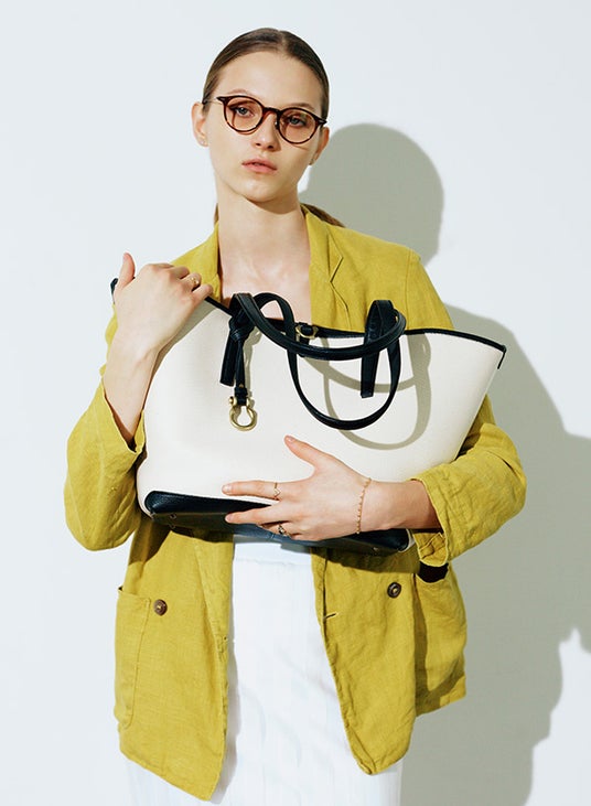 ミニマルな設計のトートバッグと、カジュアルに傾きすぎないショルダーバッグの2型を展開します。