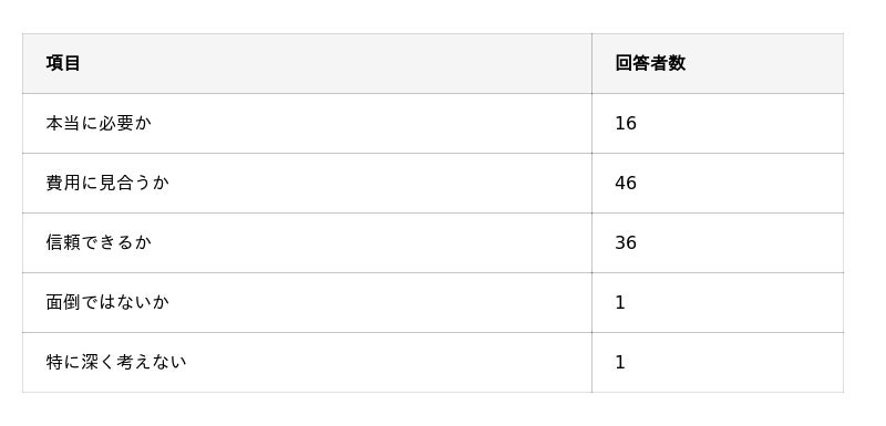 – エアコンクリーニングの依頼前に考えることは「費用に見合うか」「信頼できるか」が多い。