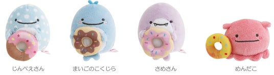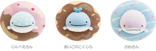 今回のテーマは、じんべえさんとポップでカラフルなドーナツをモチーフにしたデザインで、ドーナツ風のかわいいポーチをはじめ、ドーナツにはさまったじんべえさんたちのぬいぐるみ、じんべえさん風のドーナツを再現したクッションなど、集めたくなるグッズが勢ぞろいします。