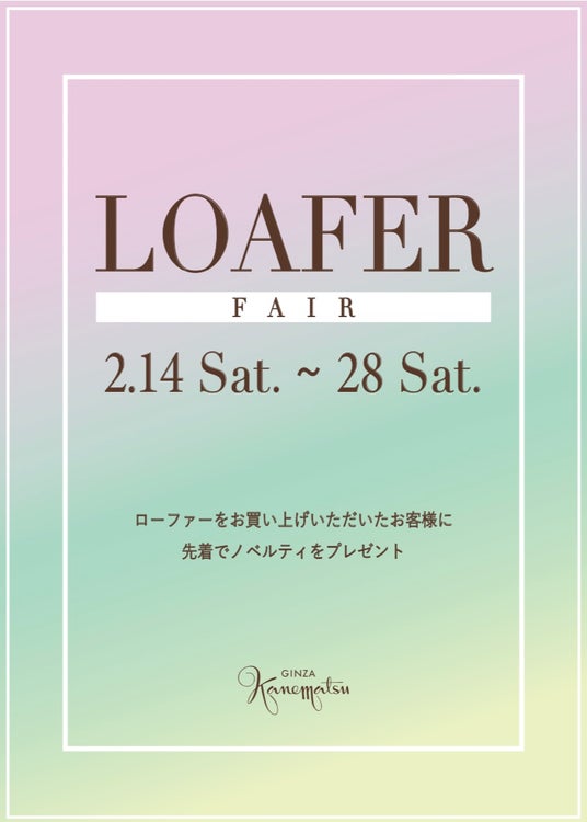 2/14(土)~2/28(土)の期間、店頭にてローファーをお買い上げいただいたお客様に先着でノベルティをプレゼント!※一部対象外店舗あり。