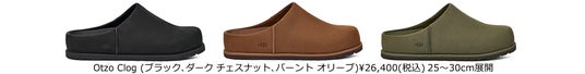 UGGの新たなアイコン、Otzo Clog(オッツォ クロッグ)は、伝統的なクラフトマンシップと現代的な美学を融合させて生まれた、洗練されたシルエットのスリッポン。デュアルジェンダー仕様のこのモデルは、極上の履き心地と洗練されたシルエット、日常使いの実用性を兼ね備え、上質で耐久性のあるヌバックレザーとウールライニングを採用しています。