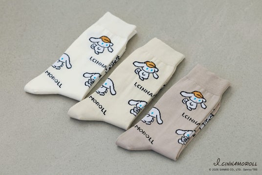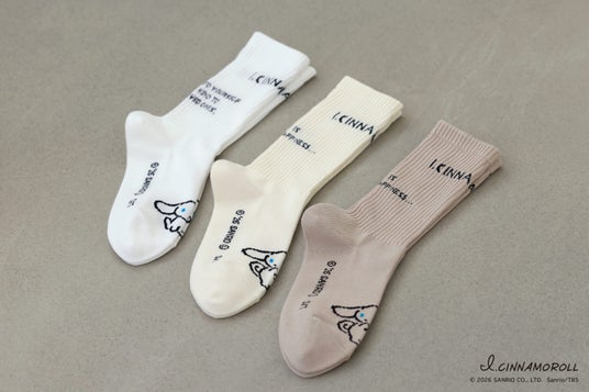 「靴下屋」「Tabio」「Tabio MEN」などの靴下専門店を展開・運営するタビオ株式会社(本社:大阪市浪速区、代表取締役社長:越智 勝寛)はこのほど、株式会社サンリオから2023年にデビューしたシナモロールの新ブランド「I.CINNAMOROLL」(アイシナモロール)と靴下屋のコラボ靴下3タイプを企画。2026年2月20日(金)から、全国の「靴下屋」「靴下屋UPDATE」の対象182店舗とTabio公式オンラインストアで販売します。