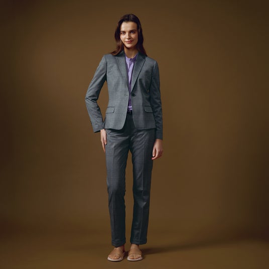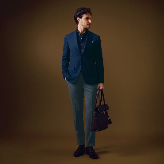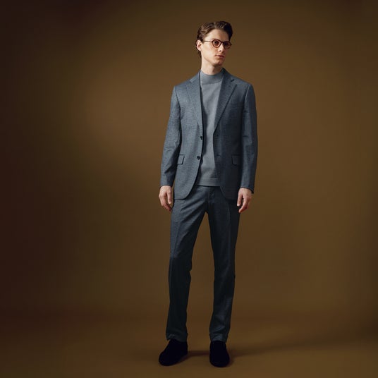 多くのビジネスマンにとって必須業務である出張を想定し、2 0 1 0 年より提案している大ヒットシリーズが「トラベラー」です。“スーツ+単品パンツ”という必要最小限の組み合わせは、スーツに加えジャケパンまでカバーすると大好評に。そんなトラベラーには長時間移動で着用し続けても疲れにくく、またシワにもなりにくいストレッチ素材を当初より採用。2 0 2 2 年からジャージー素材を初めて用い、着心地が飛躍的に向上。その後も最新の機能を付加し、誕生から1 5 年以上も愛され続ける不動の人気シリーズとなったのです。現在では出張用としてはもちろん、普段用の高機能ワードローブとして求める方も多い、オンリーの誇る定番セットとなっています。