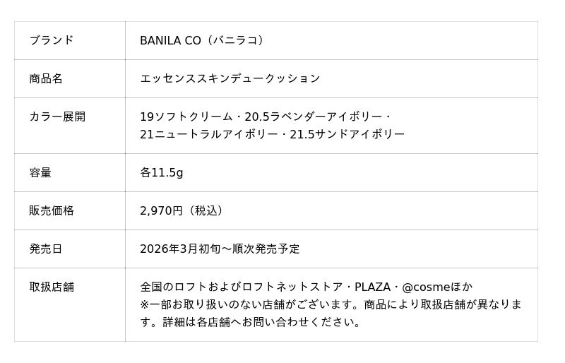 「BANILA CO」は全国のロフト・PLAZA・@cosmeほかにて、新商品「エッセンススキンデュークッション」を販売開始します。