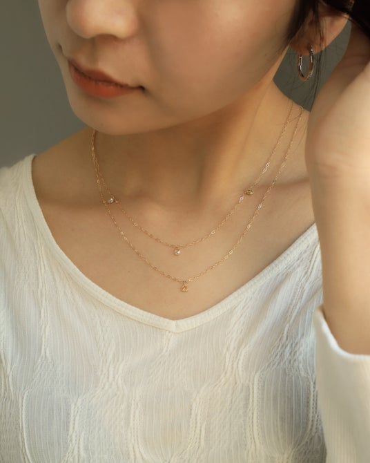 1粒タイプネックレス(K18、ダイヤモンド)¥132,000、3粒タイプネックレス(K18、ダイヤモンド)¥170,500、5粒タイプネックレス(K18、ダイヤモンド)¥209,000 すべて税込