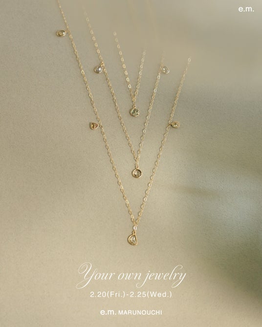 ジュエリーブランド『e.m.』を運営するイー・エム・デザイン株式会社は、2026年2月20日(金)~2月25日(水)の期間限定で、e.m.丸の内店にて「Your own jewelry」を開催。一点もののローズカットダイヤモンドネックレスを発売します。