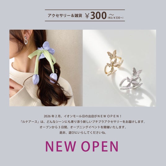 この度、イオンモール日の出店(東京都西多摩郡)にLUNA EARTHの新店がオープンいたします。