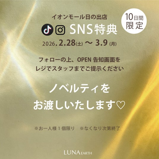 LUNA EARTHの公式TikTokまたはInstagramアカウントをフォローいただいたお客様を対象に、