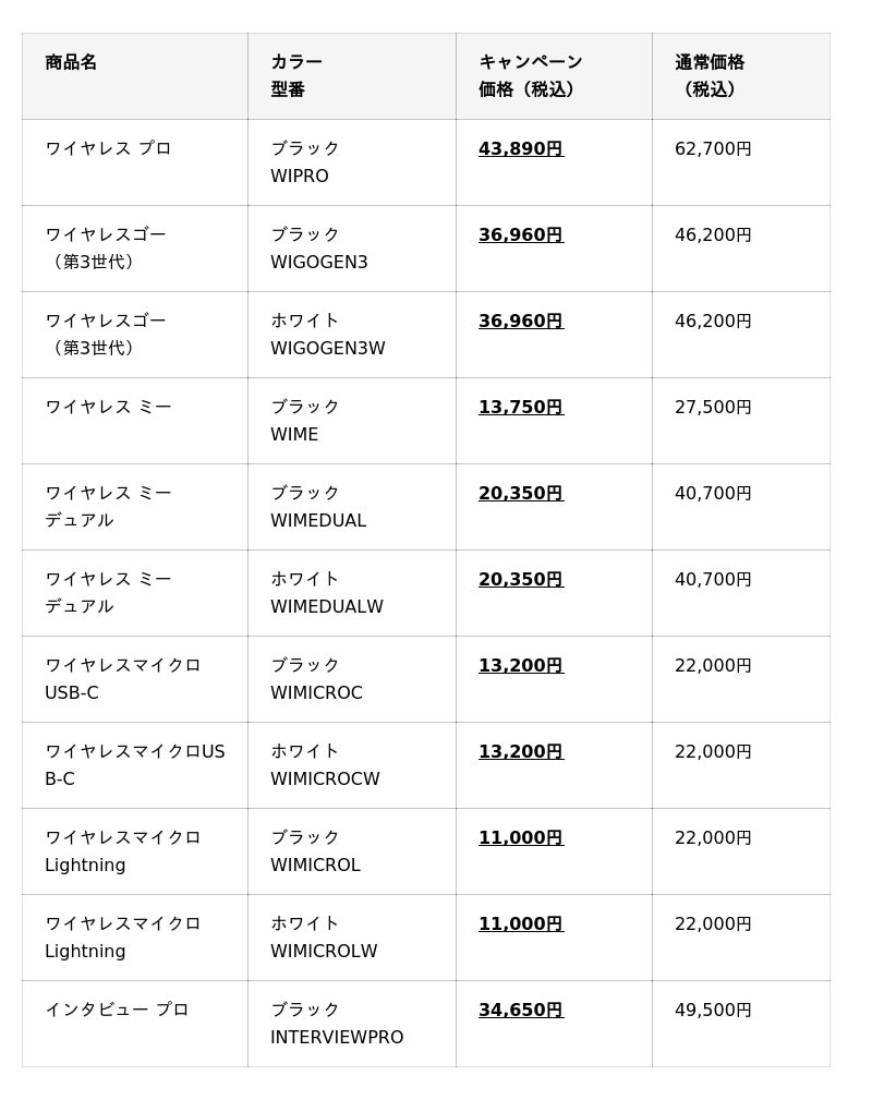 期間中、対象のRØDEワイヤレスマイクが最大50%OFFの大幅値引きとなります。