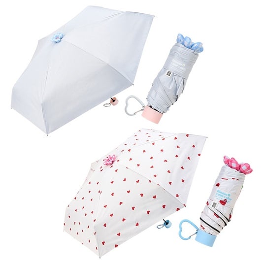ぷっくりとしたギンガムチェックのお花が先端についたキュートな日傘。コンパクトサイズで持ち運びも楽々!かわいさだけでなく、遮光率・紫外線遮へい率100%と、機能面もばっちり搭載。